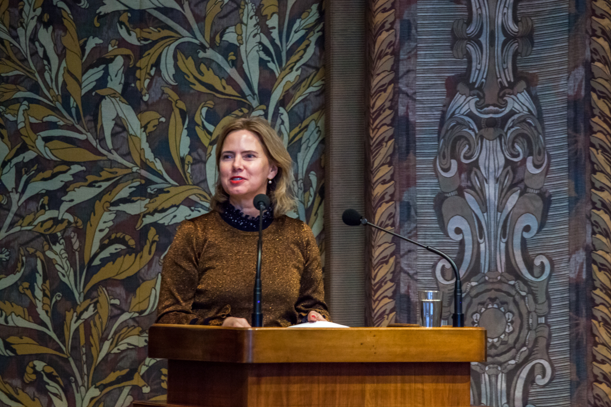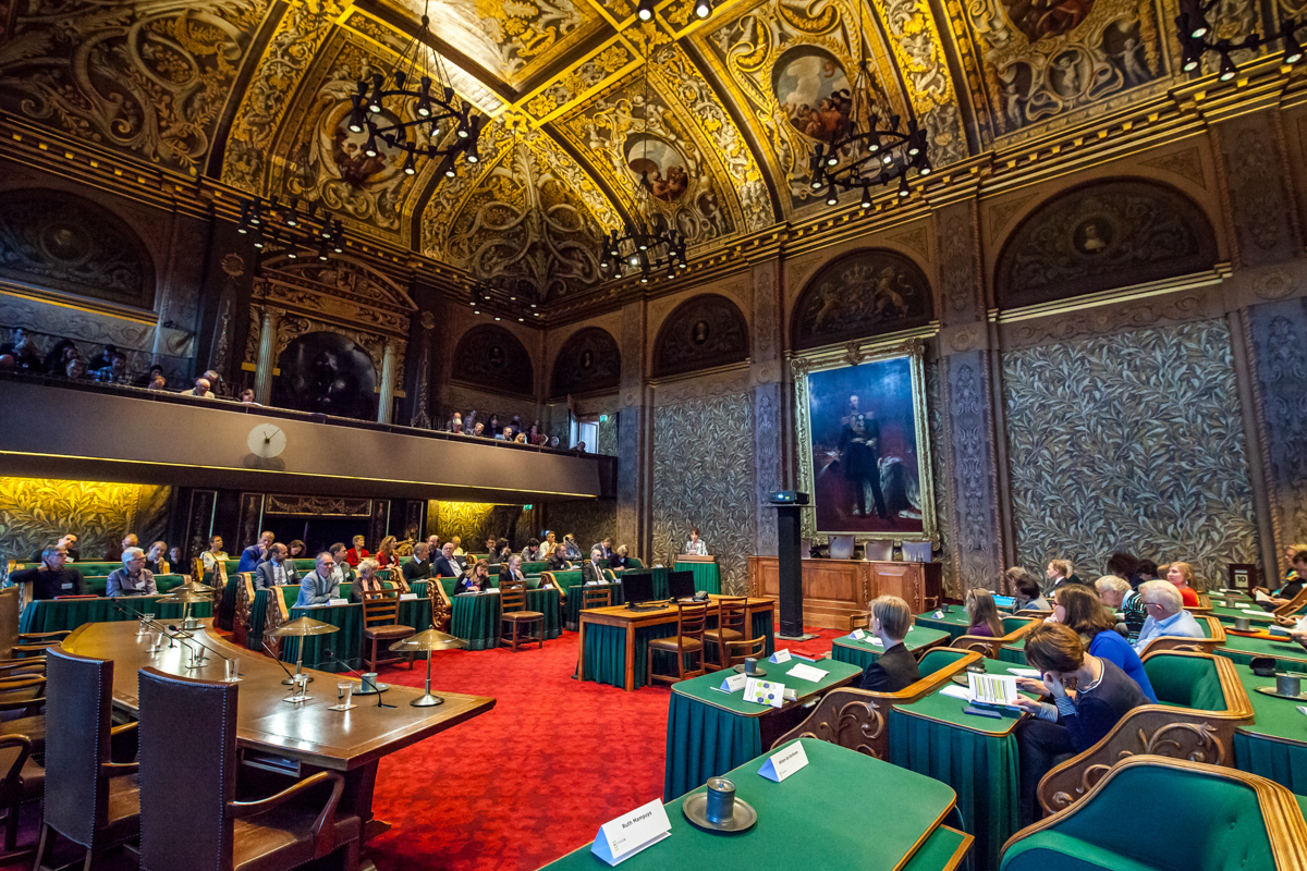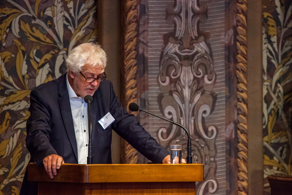 Photo: Overview over the Assembly Hall of the Senate of the Dutch Parliament, and the Chair of COGEM. prof Sybe Schaap